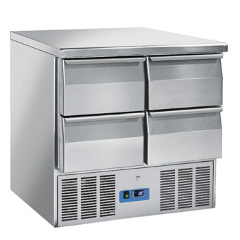 con vasca refrigerata per inserimento contener gastronorm .Esecuzione in acciaio inox. 3 porte a battente, ciascuna completa di 1 griglia e 2 guide portagriglie. Portabacinelle con coperchio inox incernierato Temperatura di esercizio +2 / + 8 °C. Termostato digitale. Evaporatore incorporato nelle pareti della struttura. Vano refrigerato atto a contenere bacinelle GN. Isolamento 45 mm. Fluido refrigerante R600A Isolamento in poliuretano senza CFC. Evacuazione automatica della condensa. Piano in acciaio inox Piedini in inox regolabili in altezza.sono stati progettati per ottimizzare gli spazi in cucina .