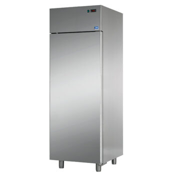 Interno ed esterno in acciaio inossidabile eccetto fondo, soffi tto e schienale esterni in Acciaio Galvanizzato. Angoli interni arrotondati. Isolamento in poliuretano senza CFC, iniettato ad alta pressione. Spessore dell’isolamento: 60 mm. Porte a chiusura automatica con guarnizione magnetica. Pannello di controllo elettronico frontale con sonda NTC. Refrigerazione ventilata. Unità refrigerante a monoblocco estraibile e tropicalizzata di serie (temperatura ambiente +43°C ed umidità relativa del 65%) funzionante con gas  R404A/R507. Armadi disponibili anche nella versione senza unità refrigerante. Sbrinamento ed evaporazione dell’acqua di condensa completamente automatici. Modellli 600 L con porta reversibile. Piedi in Acciaio Inossidabile regolabili in altezza. Armadi combinati disponibili esclusivamente con evaporatore all’interno della camera refrigerata. Varie personalizzazioni disponibili a catalogo. Design compatto.   Armadi BT: strumento elettronico di controllo con 2 sonde NTC; resistenza all’evaporatore; resistenza di scarico; resistenza bordo porta; dispositivo fermo ventilazione all’apertura della porta, valvola termostatica.
