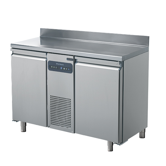 Tavolo congelatore Costruzione interamente in acciaio inox AISI 304 con angoli interni arrotondati. Perfetto isolamento ottenuto tramite schiume poliuretaniche espanse ad alta densità con iniezione di ciclopentano. Spessore isolamento 60 mm. Gruppo refrigerante sistemato in posizione centrale raffreddato ad aria con gas refrigerante R 404 a. Funzionamento in ambiente fino alla temperatura di +43°C. Controllo elettronico a microprocessore con visualizzatore digitale esterno della temperatura. Sbrinamento automatico. Temperatura regolabile da -10 a -22°C. In dotazione N. 1 griglia Rilsan GN 1/1 e N. 4 coppie di guide in acciaio inox. Temperatura regolabile da -10 a -22°C per lo stoccaggio di carne, pesce e latticini. • Disponibilità di varie combinazioni di porte e cassetti modificabili in loco. • Controllo a microprocessore elettronico con visualizzatore digitale esterno della temperatura. • Circolazione forzata dell’aria per una veloce fase di raffreddamento ed un’uniforme distribuzione della temperatura. • Isolamento da 60 mm per un maggiore risparmio energetico. • Unità tropicalizzata (temperatura ambiente 43°C). • L’apparecchiatura è prevista per un utilizzo con una temperatura ambiente fino a 40°C. Costruzione • Compressore incorporato • Costruito in acciaio inox AISI 304 per soddisfare i più alti standard di igiene • Angoli interni arrotondati per una maggiore pulibilità. • Montato su piedini regolabili H150 mm per facilitare le operazioni di pulizia • Piano di lavoro in acciaio inox AISI 304, con spessore di 50 mm. • Accesso a tutti i componenti dalla parte frontale dell’unità. • Sviluppato e prodotto da azienda certificata • Apparecchiatura priva di CFC e HCFC (Fluido refrigerante ecologico: R290A – Gas di schiumatura: ciclopentano)