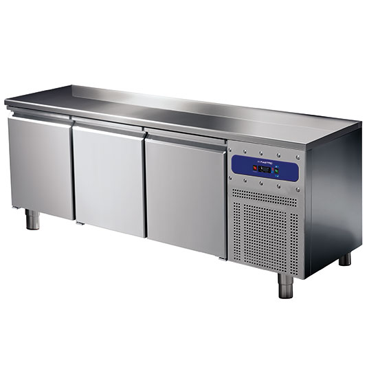 Interno ed esterno in Acciaio Inossidabile. Angoli interni arrotondati. Isolamento in poliuretano. Spessore dell’isolamento: 50 mm. Porte con chiusura automatica e guarnizione magnetica. Pannello di controllo elettronico frontale. Refrigerazione ventilata. Unità refrigerante tropicalizzata di serie (temperatura ambiente +43°C ed umidità relativa del 65%). Sbrinamento ed evaporazione dell’acqua di condensa completamente automatici. Piedi in Acciaio Inossidabile regolabili in altezza.Dotazione di serie: 1 Griglia Rilsan GN 1/1, 2 Guide inox ad “L” per porta.